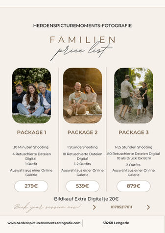 Bitte beachtet, das in den Preisen nicht nur die reine Shootingzeit kalkuliert ist. Als Fotografin habe ich zusätzlich zu der eigentlichen Session noch